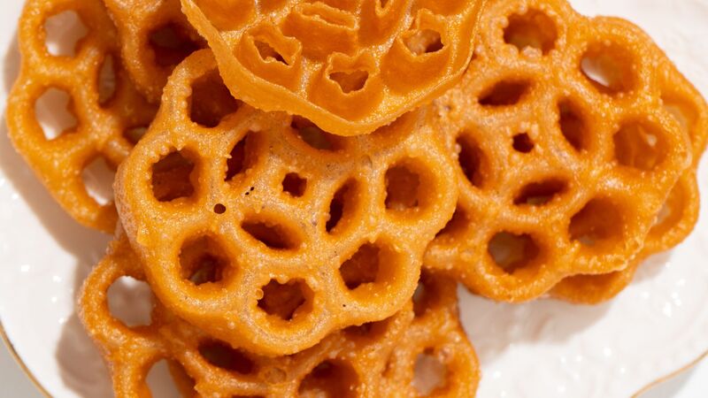 Achu murukku—often called rose cookies—is produced using a patterned mould and features a light, slightly sweet batter. It’s popular in Malaysian Indian households and often appears alongside other festive cookies.