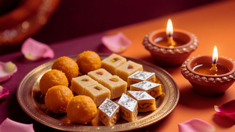 Mysore pak (a dense, buttery sweet) and various barfi (milk-based fudge, including kaju katli) are premium sweets often purchased as gifts or included in luxury festive hampers. Many established sweet shops in KL and Penang stock these items during the season.